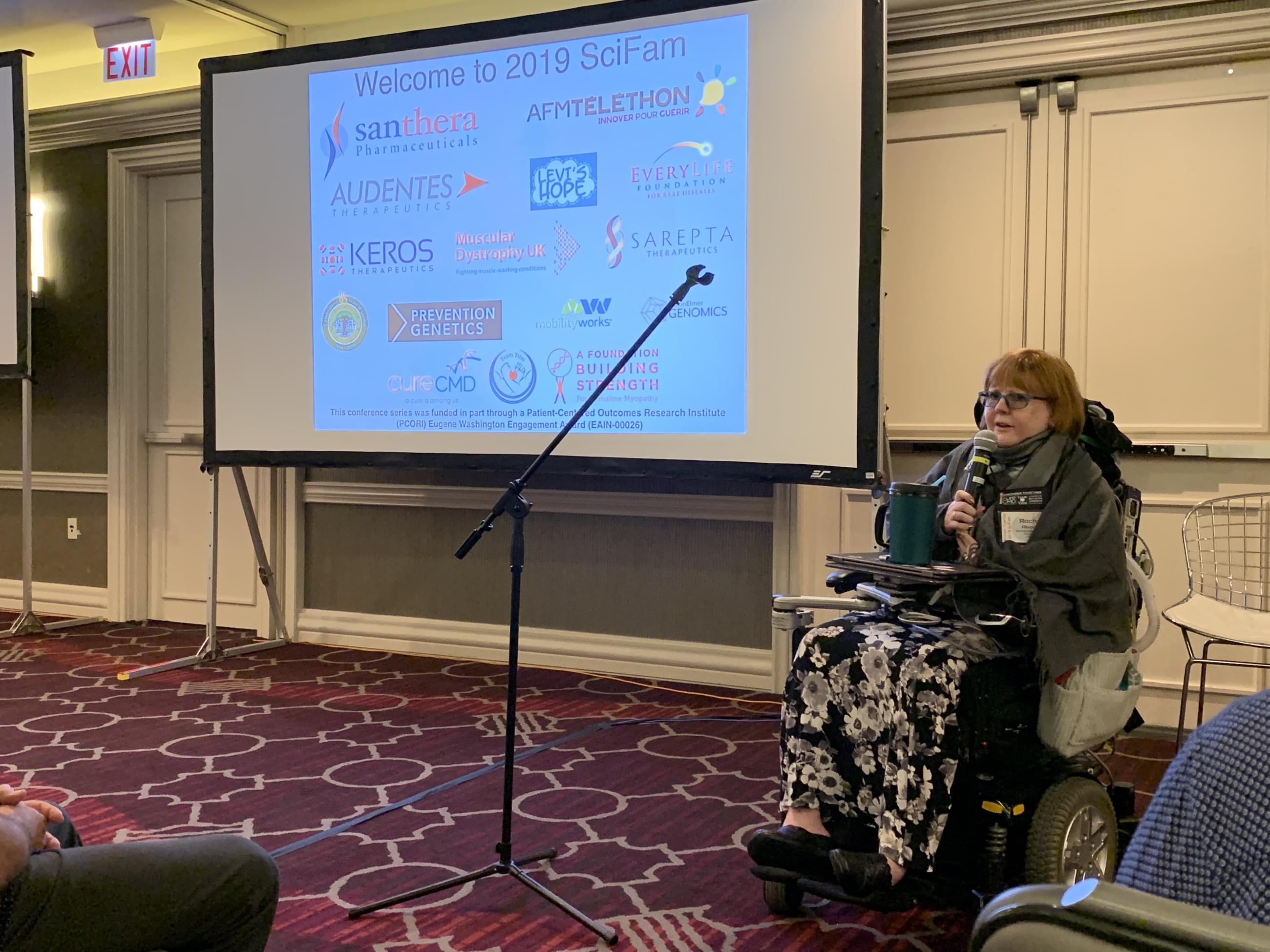 Svůj prostor dostala také farmaceutická firma Santhera, aby se podělila o novinky ve vývoji léku Omigapil. Musím říct, že zástupkyně firmy Jodi Wolff se úkolu zhostila velmi dobře. Místo suché prezentace firmy se zaměřila na to podstatné, co nás jako pacienty nebo rodiče zajímá.