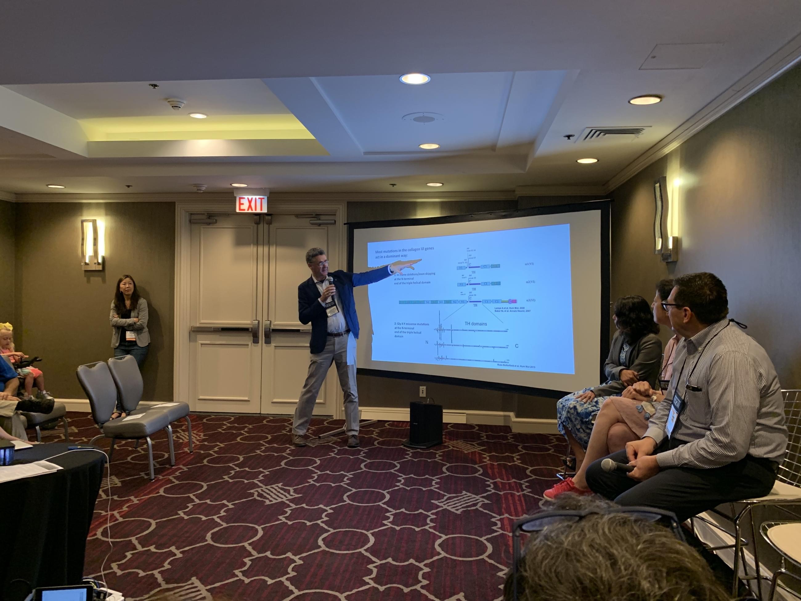 Po společném bloku se konference rozdělila a my se účastnili jen přednášek týkajících se Kolagen VI. Nejprve diagnostice, pak výzkumu. Doktoři Russell Butterfield a Carsten Bönnemann vzali vše od začátku, podrobně a tak, abychom tomu všichni rozuměli, ale přiznám se, že genetika asi nikdy nebude „můj“ obor.