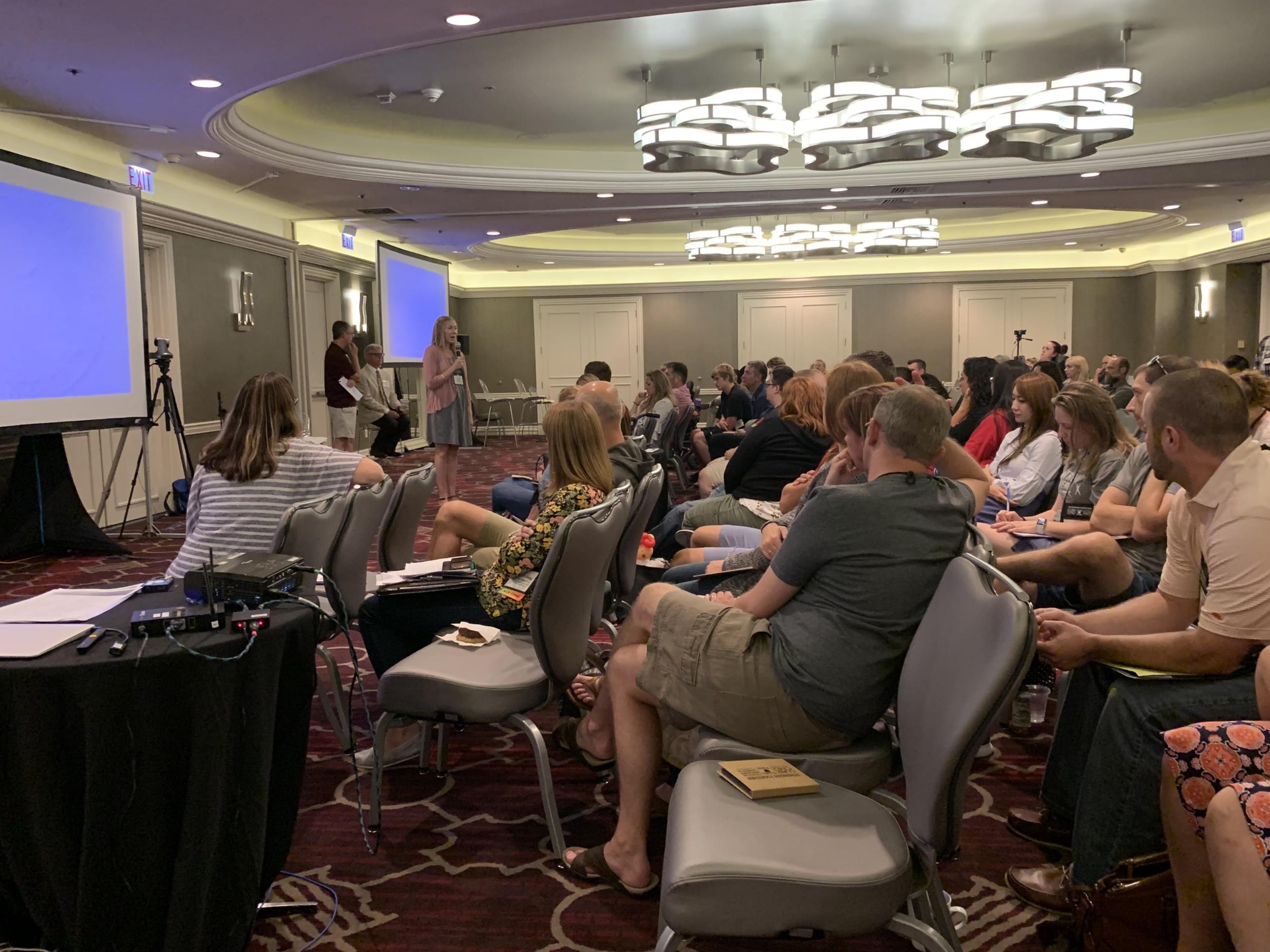 Neděle začala společným blokem o péči o pacienty s Kolagen VI svalovou dystrofií. Tentokrát vedenou A. Reghan Foley a Russellem Butterfieldem. Stihli jsme i krátkou osobní konzultaci s panem doktorem Bönnemannem. Zná naší paní doktorku Janu Haberlovou a moc rád někdy přijede do ČR. Je totiž Němec, takže to má kousek. Na světě není většího odborníka na Kolagen VI.