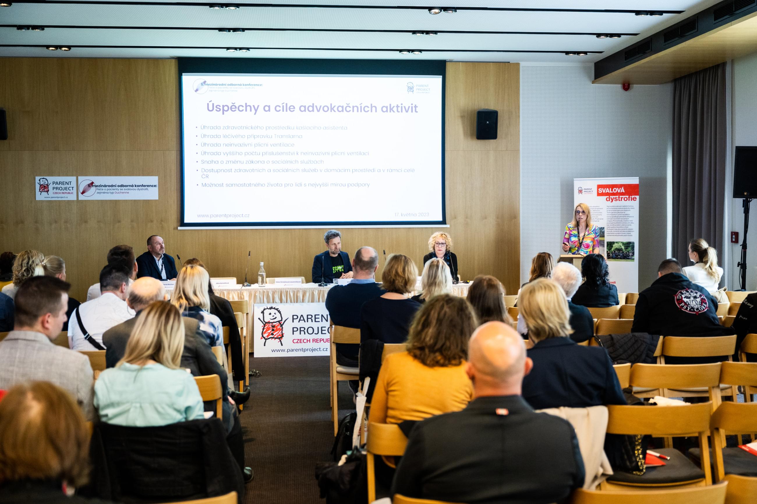 Ve středu 17. května 2023 se v Hotelu Golf v Praze 5 konala 5. mezinárodní odborná konference: Péče o pacienty se svalovou dystrofií, zejména typ Duchenne, kterou pořádala pacientská organizace Parent Project spolu s Fakultní nemocnicí v Motole a 2. lékařskou fakultou Univerzity Karlovy.