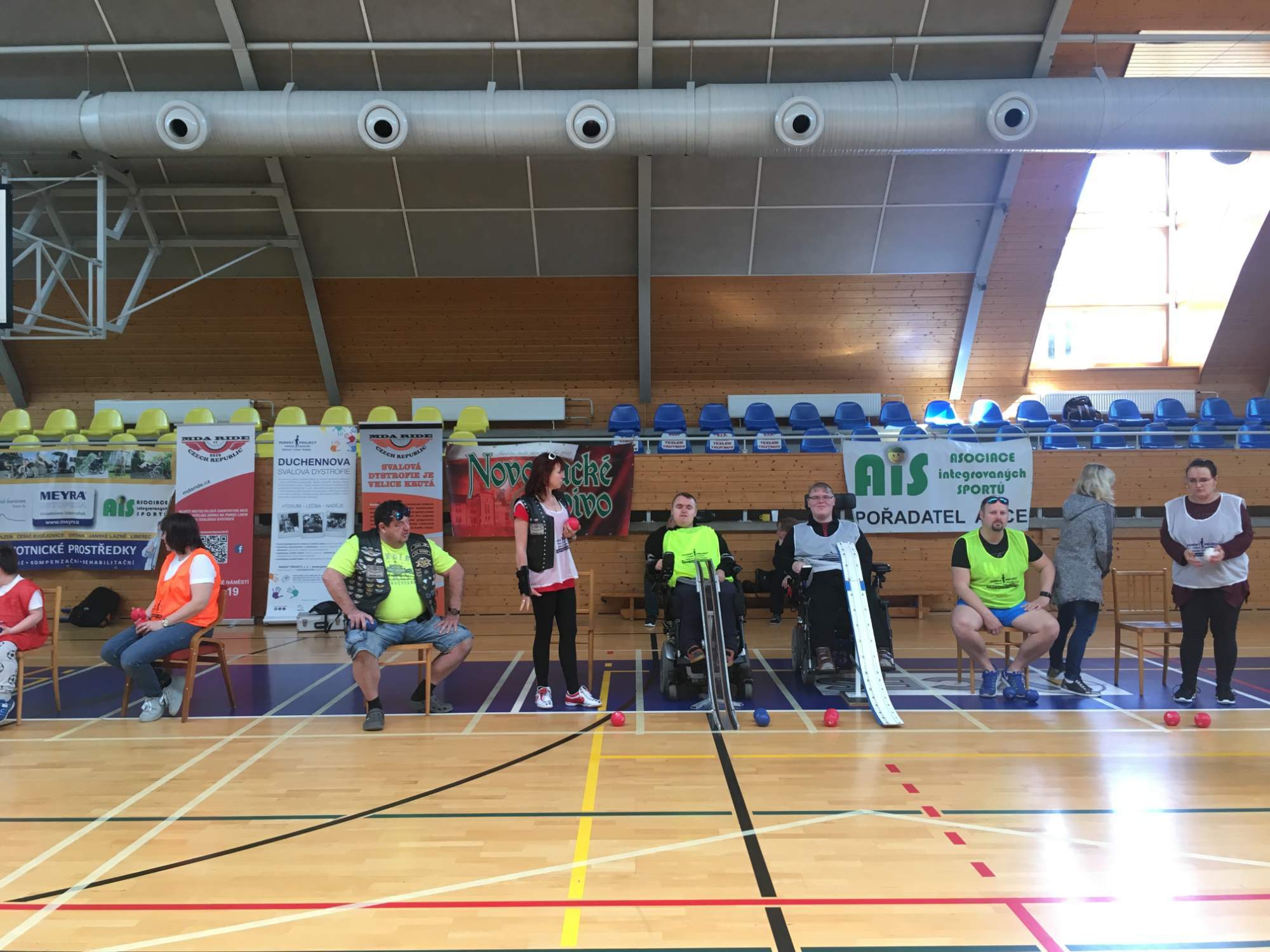A protože ve více lidech je vždy větší sranda, pořádáme minimálně jednou za rok až dva pro své členy turnaj. Ten poslední se uskutečnil 11. 5. 2019 a jednalo se již o 6. ročník turnaje v integrované boccie. A protože ještě větší sranda je, když vás podpoří kamarádi, nechyběli ani ti naši z MDA Ride, kteří přijeli i přes nepřízeň počasí do tělocvičny v Nové Pace.