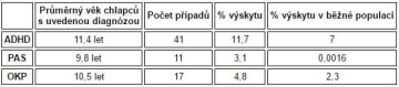 - ADHD bylo diagnostikováno u 11,7 % chlapců. To je více než dvojnásobek oproti běžné populaci, kde se prevalence pohybuje mezi 3–7 %.