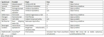 Komunita DMD tvrdě pracovala na dosažení bohaté škály klinických studií. Mnohé z těchto projektů už od plenek podporuje PPMD. Chceme zajistit studie důkladné, efektivní a rychle vyhodnocovat životaschopnost projektů, aby nedocházelo ke ztrátám drahocenného času a zdrojů. Následující seznam sice není 100% vyčerpávající, ale zahrnuje kandidáty, které jsou na obzoru. Jak již bylo uvedeno, mají první dva zajištěno partnerství firmy Sarepta, která jim finančně pomůže na cestě rizikovější částí vývojového procesu.
