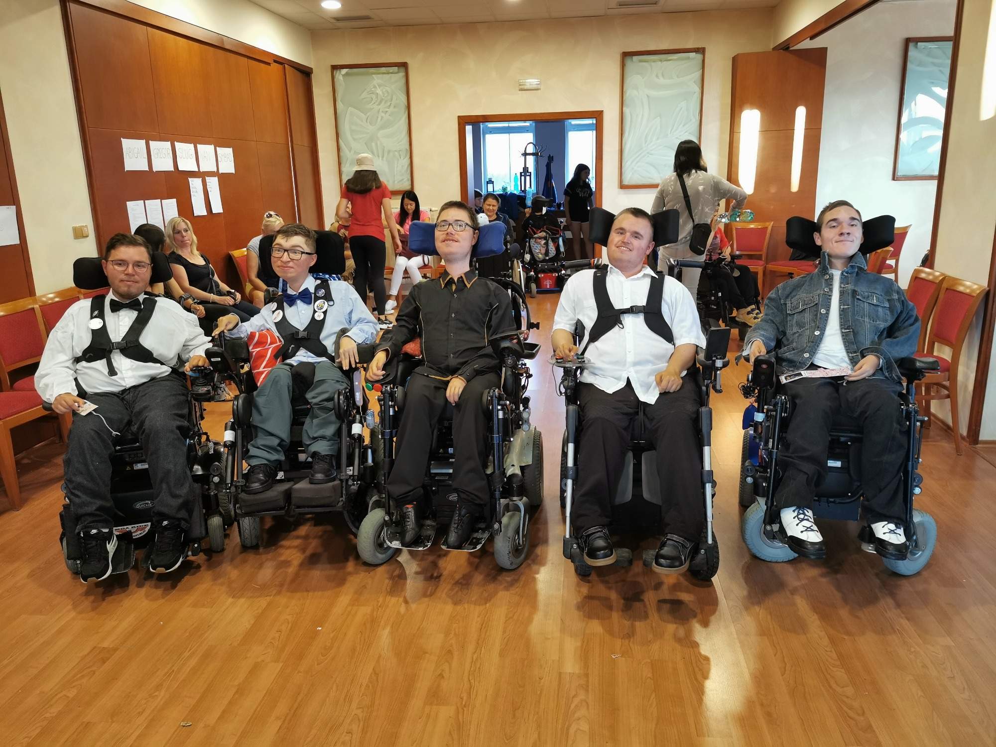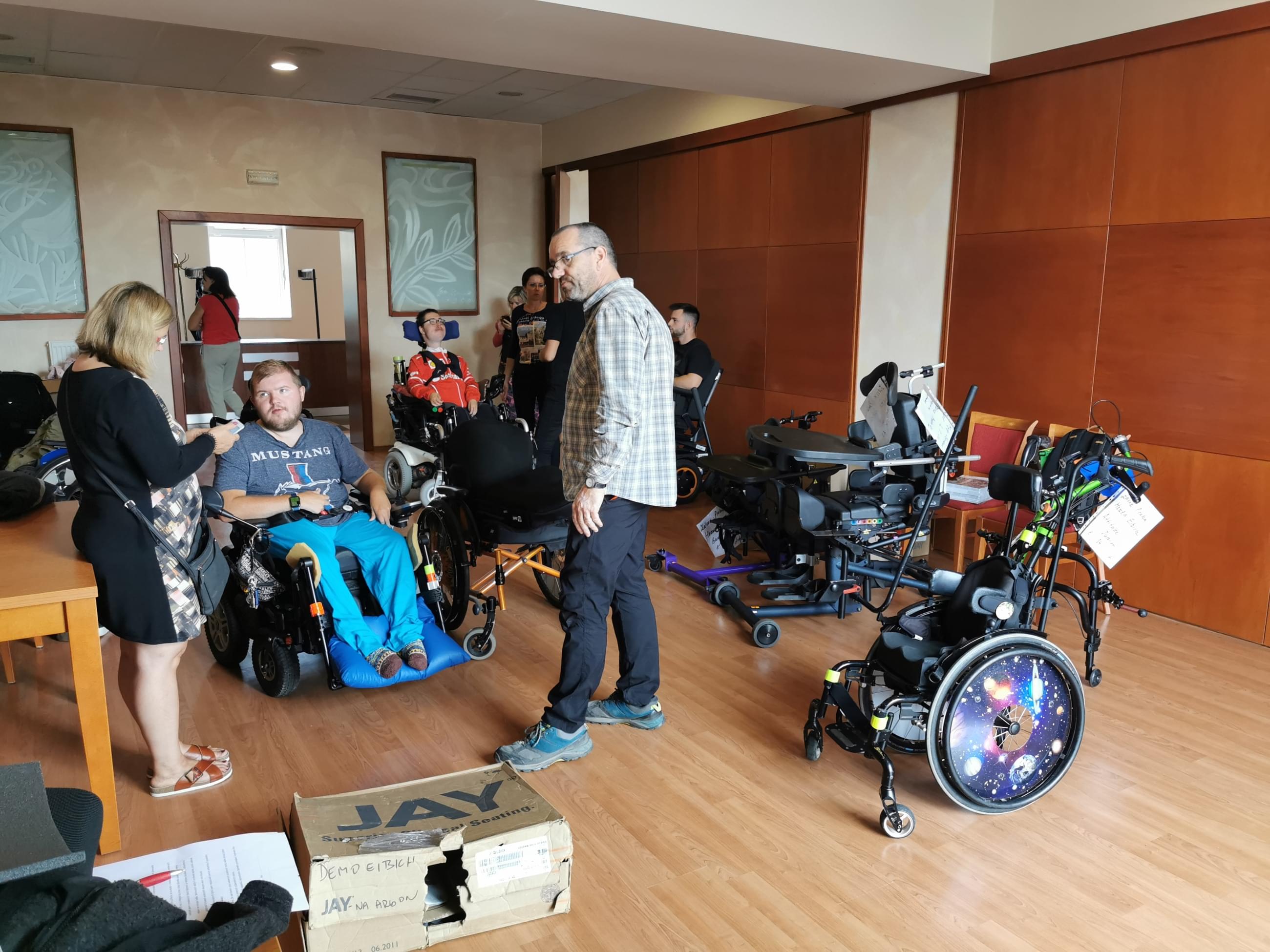 Velmi vítanou návštěvou byli i pánové z firem Medicco a Erilens. Situace, které se říká win-win. Odborníci z konkrétní firmy přijedou, ukáží, vysvětlí a zodpoví dotazy a zároveň najednou osloví velký počet klientů. A víte, co je nejlepší, když vám přivezou najednou na ukázku několik elektrických vozíků? No přece to štěstí, když si dítě, které má zatím jen mechanický vozík, vyzkouší ten elektrický. Najednou řádí a může konečně samo jet…