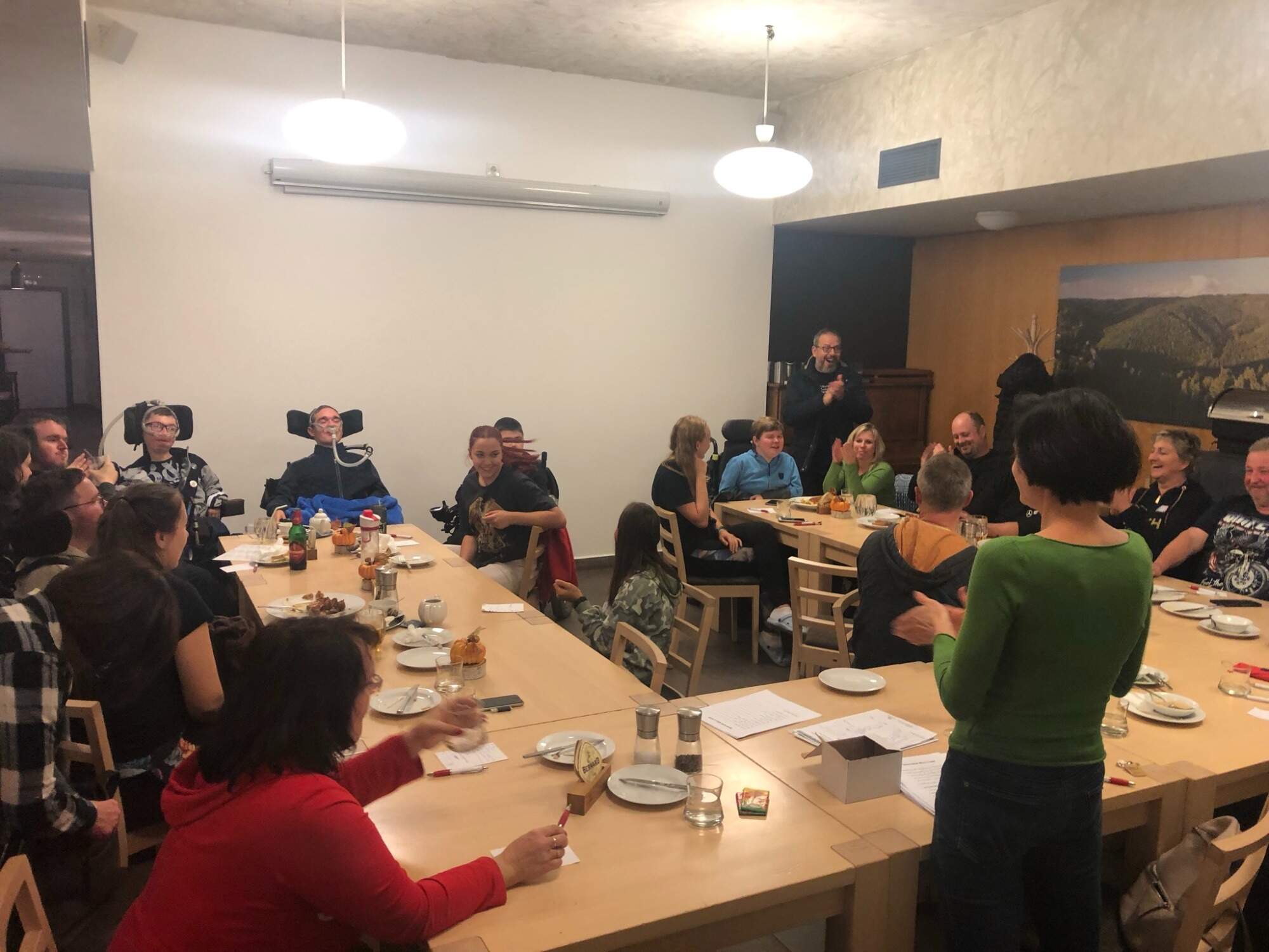 Po obědě si rodiče udělali svůj vlastní program. A zatímco si při něm chvíli oddechli, my jsme s asistentkami vyrazili do centra Chomutova. Cestou jsme dorazili do hotelu U Dvou medvídků, kde jsme se občerstvili. Nechyběla káva, čaj a pivo.