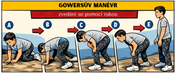 U dětí s DMD bývá patrné mírné opoždění motorického vývoje. Chlapci mají potíže s běháním a skákáním, protože svaly v oblasti boků, stehen a trupu postupně slábnou. Typickým projevem je také způsob vstávání ze země, kdy si dítě pomáhá rukama o stehna – tzv. Gowersův manévr.